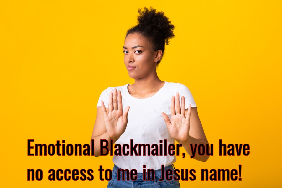 Also, we bind the spirit behind emotional blackmailers who reflect an outward expression and gesture in order to lure you into doing something for him or her that is not God’s will for you.